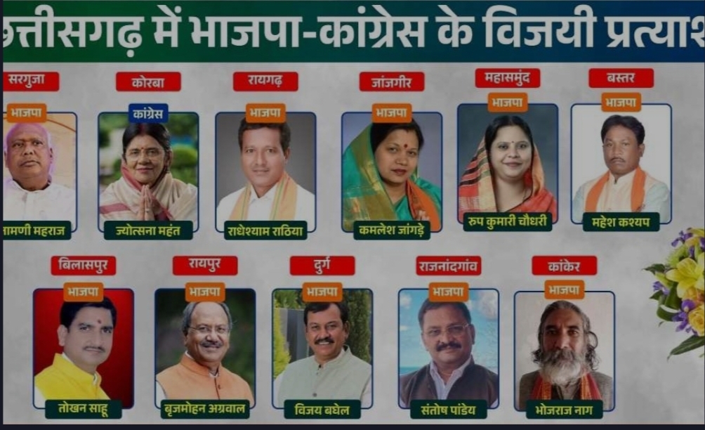 छत्तीसगढ़ में भाजपा ने 11 सीटों में से 10 सीटों पर अपना कब्जा जमा लिया है तो वही कांग्रेस के खाते में सिर्फ 1 सीट आई है। वहीं रायपुर लोकसभा सीट से भाजपा प्रत्याशी बृजमोहन अग्रवाल ने ऐतिहासिक जीत दर्ज करते हुए कांग्रेस प्रत्याशी विकास उपाध्याय को रिकॉर्ड 575285 मतों से हराया है। दुर्ग से भाजपा प्रत्याशी विजय बघेल ने 438226 वाेटों के बड़े अंतर से जीत दर्ज की है. कांग्रेस को कोरबा लोकसभा सीट पर ही जीत नसीब हुई है. यहां ज्योत्सना महंत ने सरोज पांडेय को 40 हजार से ज्यादा वोटों से हराया है।