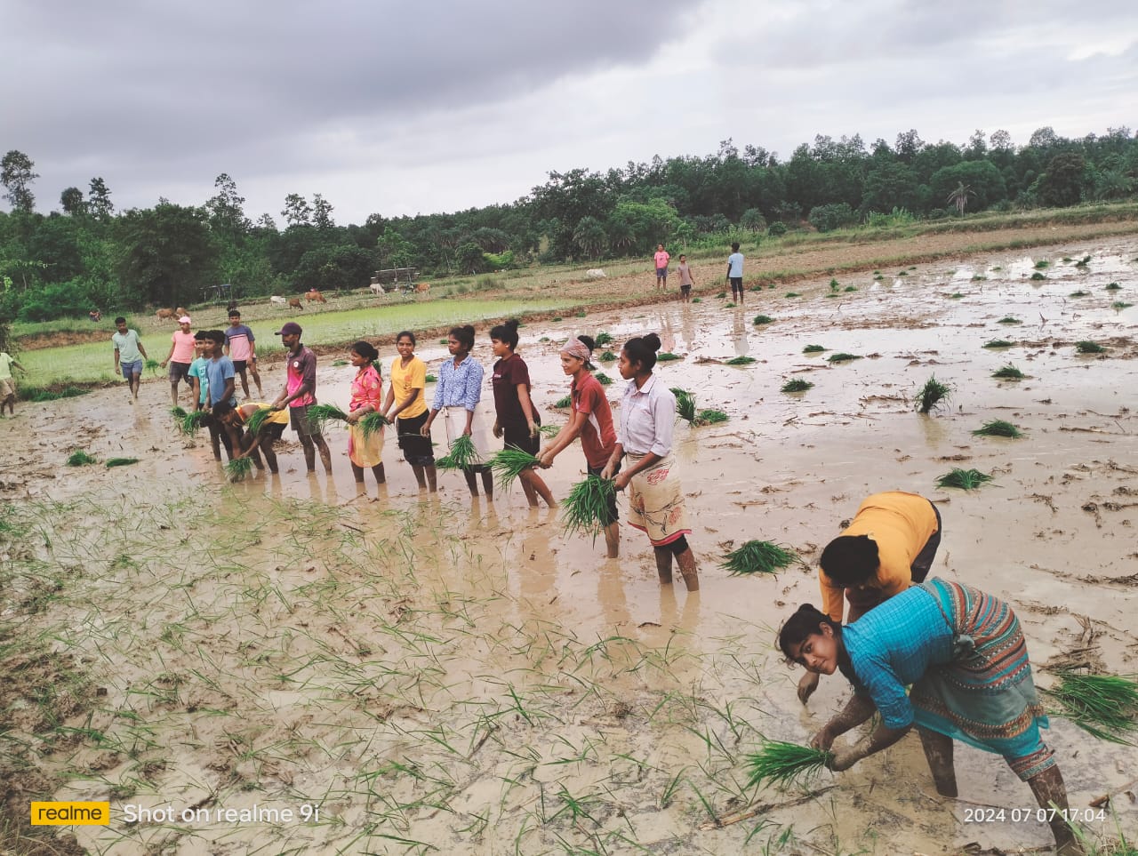 आदिवासी युवा संगठन डिहीपारा द्वारा खेतों में रोपा लगाया गया
