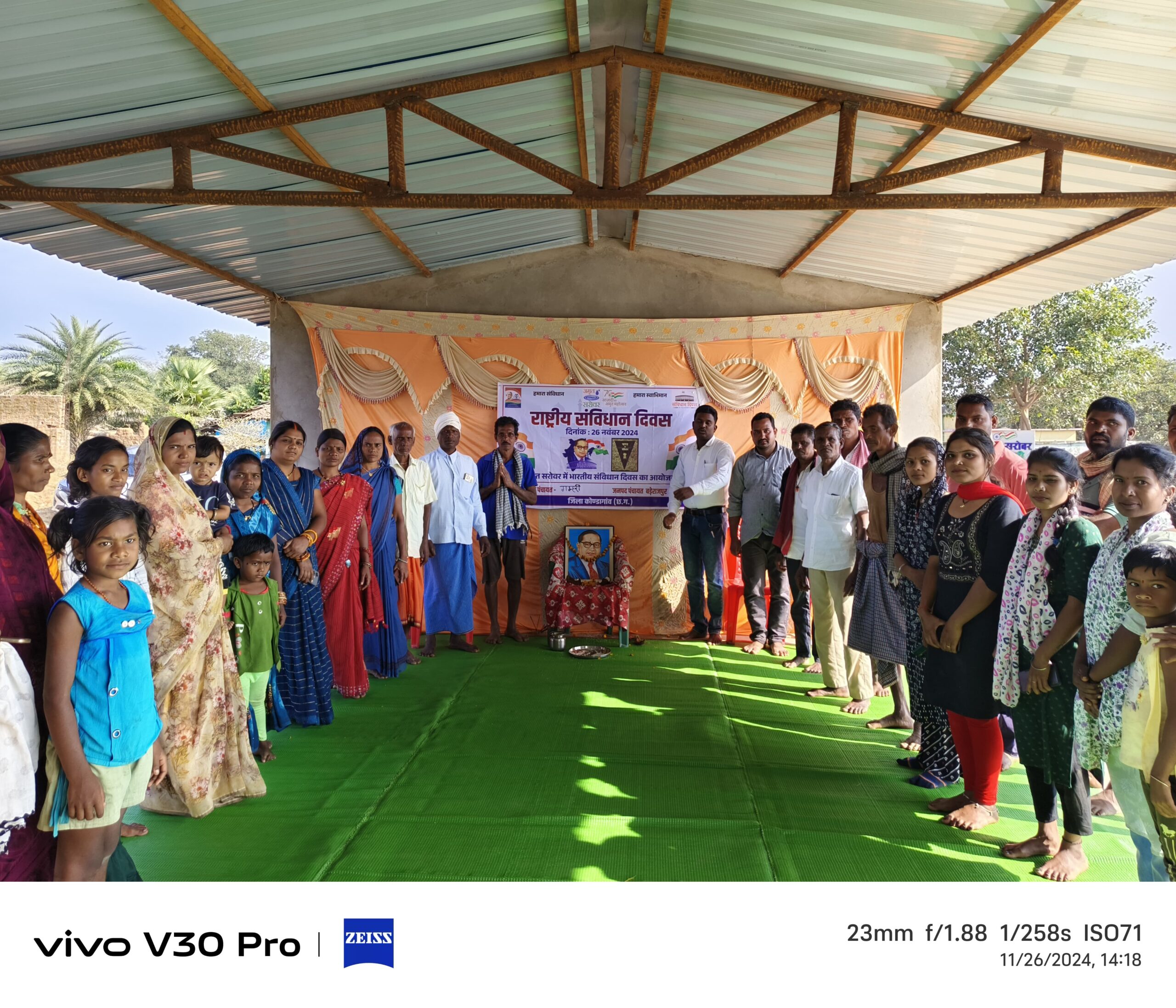 गम्हरी मे 26 नवंबर 2024 को संविधान निर्माता बाबा साहेब डॉक्टर भीमराव अंबेडकर जी के छायाचित्र में दीप प्रज्वलित कर पूजा अर्चना किया ग्राम के सरपंच रेखा मरकाम एवं समस्त ग्रामवासियों के द्वारा किया।संविधान दिवस समारोह का आउद्बोधन सरपंच रेखा मरकाम ने कही हमारा भारत का संविधान पवित्र है संविधान की बदौलत ही हम सभी धर्म समुदाय पंथ में समानता और भाईचारा है भारत का संविधान का हर कीमत पर सुरक्षा और सम्मान करना हमारा पूरे भारतवासी का कर्तव्य व जिम्मेदारी है राष्ट्र की एकता अखंडता संविधान के बदौलत सुनिश्चित है अतिथियों ने कहा हमारे देश के ग्रामीण गांव में रहने वाले लोगों तक संविधान का पुस्तक पहुंचना है जिससे हमारे भारत की कानून की जानकारी होना चाहिए । इस कार्यक्रम महिला एवं बाल विकास के सुपरवाइजर, तकनीकी सहायक मनरेगा प्रदीप कुमार सिंह, समस्त आंगनबाड़ी कार्यकर्ता, उपसरपंच गिरिजा पम्हार, सरपंच प्रतिनिधि हेमंत कुमार मरकाम, उपसरपंच प्रतिनिधि, धनेश पम्हार, पंचगण एवं ग्रामीण जन उपस्थित रहे।