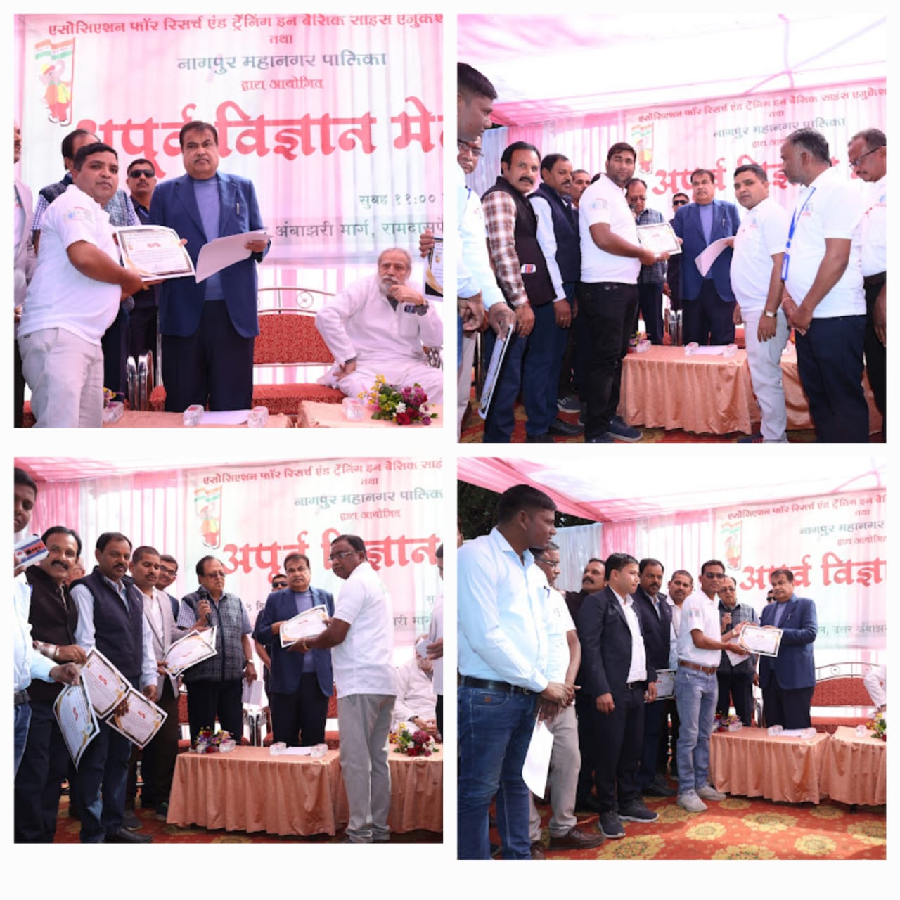 उक्त कार्यक्रम में 14 दिसंबर को आए अतिथि केंद्रीय मंत्री माननीय श्री *नितिन गडकरी जी* केंद्रीय मंत्री के हाथों विज्ञान संचारकों को प्रशस्ति पत्र व स्मृति चिन्ह प्रदान किया गया। गडकरी जी ने बताया कि टेक्नालॉजी की शुरुआत बेसिक विज्ञान को समझने से होती हैं। इसलिए इस प्रकार के कार्यक्रम जिनमे बेसिक विज्ञान के प्रति आकर्षण जागृत होता हैं बहुत आवश्यक है, उन्होंने इस प्रकार के आयोजन के लिए एक स्थाई व्यवस्था जिसमे लैब, प्रदर्शनी स्थल, भोजन करने के लिए जगह, विज्ञान के रोचक मॉडल विभिन गतिविधियों के लिए भवन हो का निर्माण करवाने की बात की, विज्ञान मेला के आयोजक श्री सुरेश अग्रवाल ने कहा की विज्ञान को जन जन तक पहुंचाने का कार्य आप सब विज्ञान संचारको के द्वारा प्रयास साहरणीय है जो की इन कार्यक्रमों से सम्भव हो पाया है,
