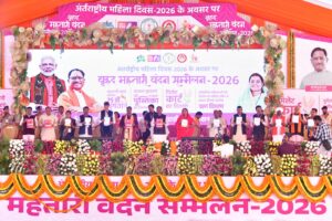 कोंडागांव / बस्तर। अंतर्राष्ट्रीय महिला दिवस के अवसर पर महिला एवं बाल विकास विभाग द्वारा 8 मार्च 2026 को लालबहादुर शास्त्री मिनी स्टेडियम, जनपद पंचायत बस्तर में संभाग स्तरीय वृहद महतारी वंदन सम्मेलन का भव्य आयोजन किया गया। इस अवसर पर पूरे बस्तर संभाग से हजारों की संख्या में माताएं, बहनें, स्व-सहायता समूह की महिलाएं और विभागीय कार्यकर्ता उत्साहपूर्वक शामिल हुए।